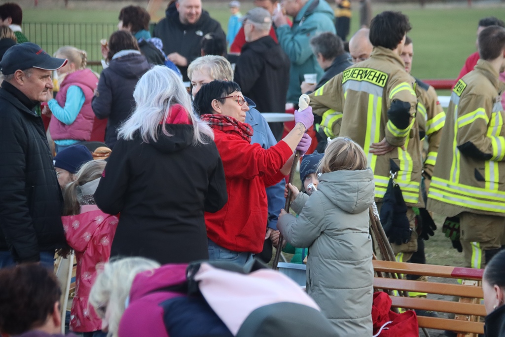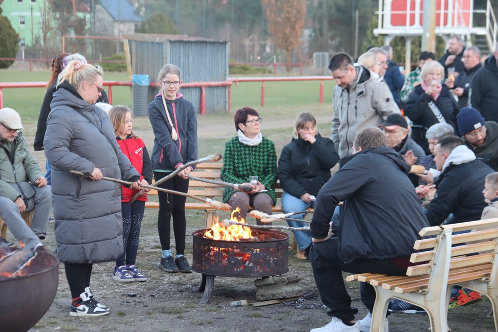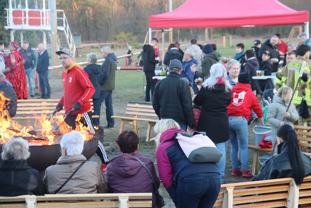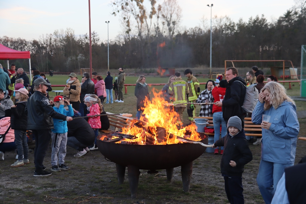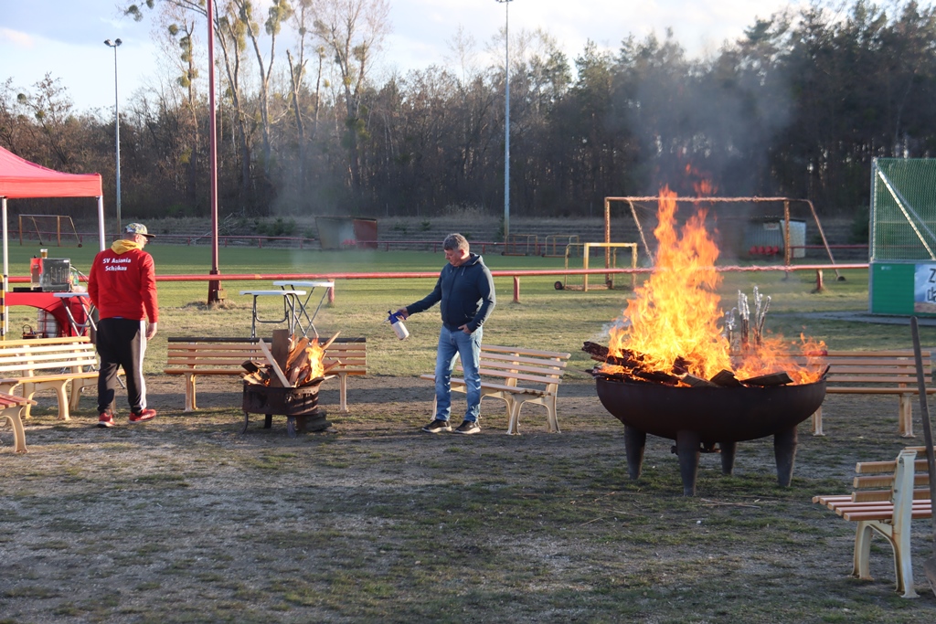 Pünktlich starteten die fleißigen Helfer mit den Vorbereitungen zum traditionellem Osterfeuer auf dem Sportplatz.