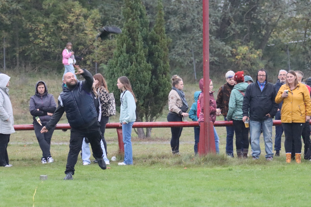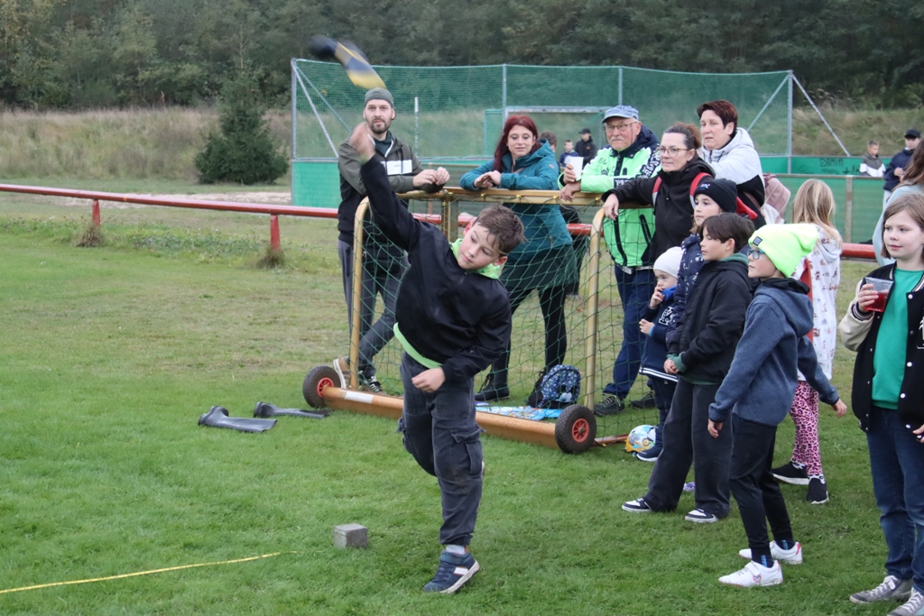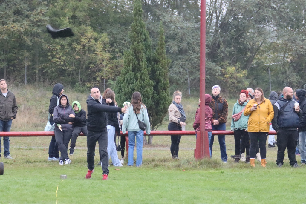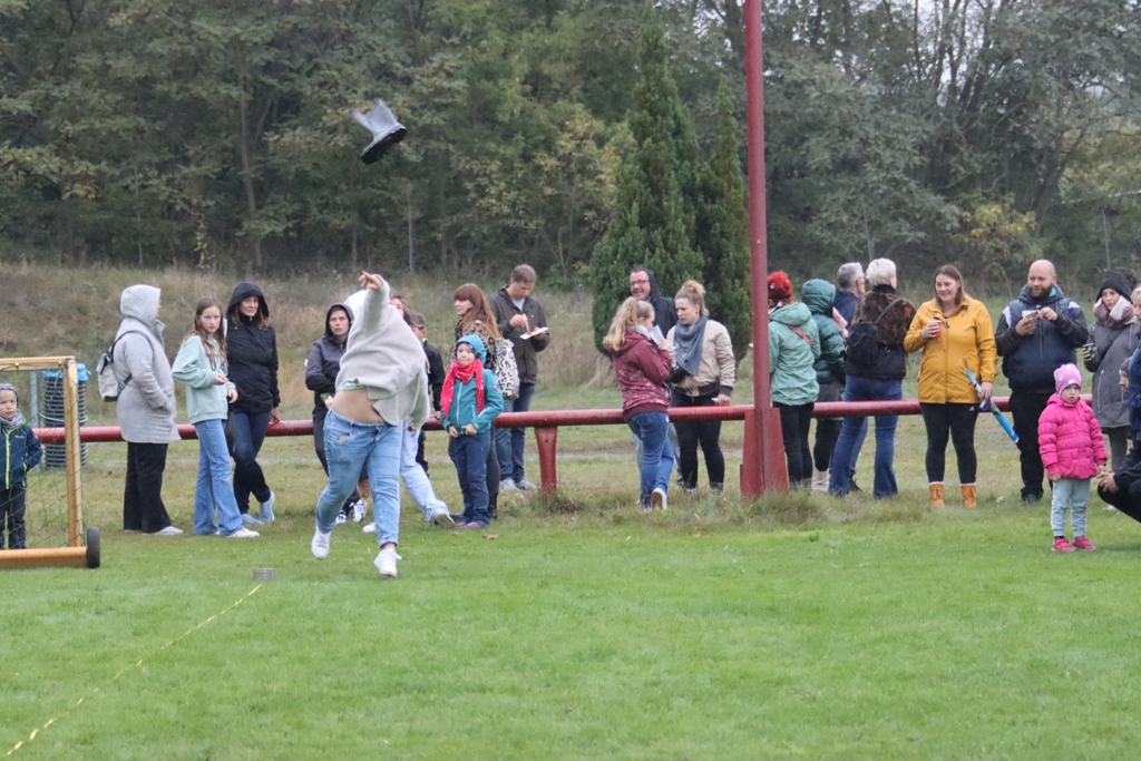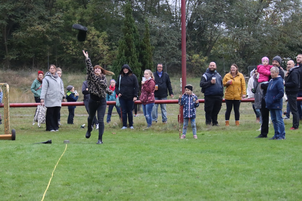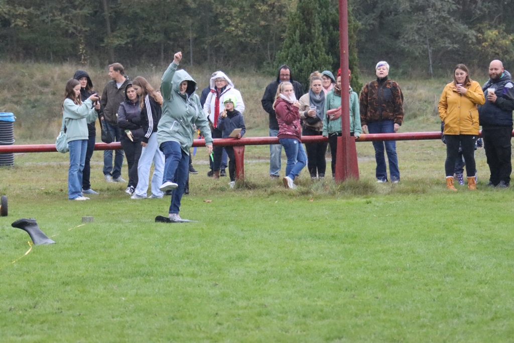 Trotz stärker werdendem Regen fand natürlich das traditionelle Gummiestefel weitwerfen statt. Interessante Techniken und erstaunliche Weiten konnten bestaund werden.